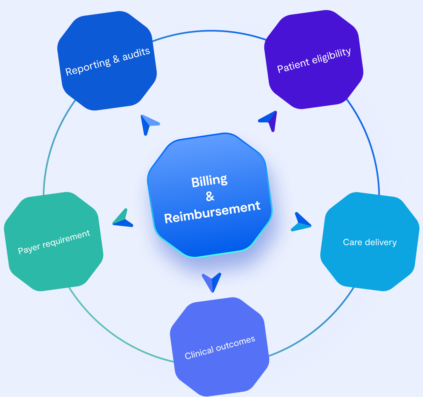 This is usually when teams realize that billing is not something that can be fully deferred. In value-based care, billing is closely tied to how care, responsibility, and progress toward outcomes are represented across the product, often using leading indicators long before final outcomes are visible. Over time, small assumptions made early about workflows, data, and integrations tend to surface through reimbursement and reporting requirements, especially in specialty care models where rules are more nuanced.