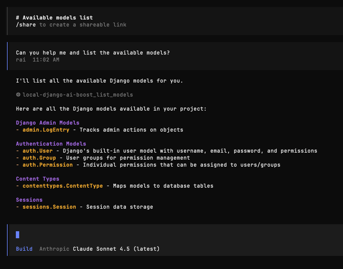 MCP provides the structure to expose these capabilities in a predictable format. Django AI Boost builds on that infrastructure and adds the framework-specific tools that editors and AI assistants currently lack.